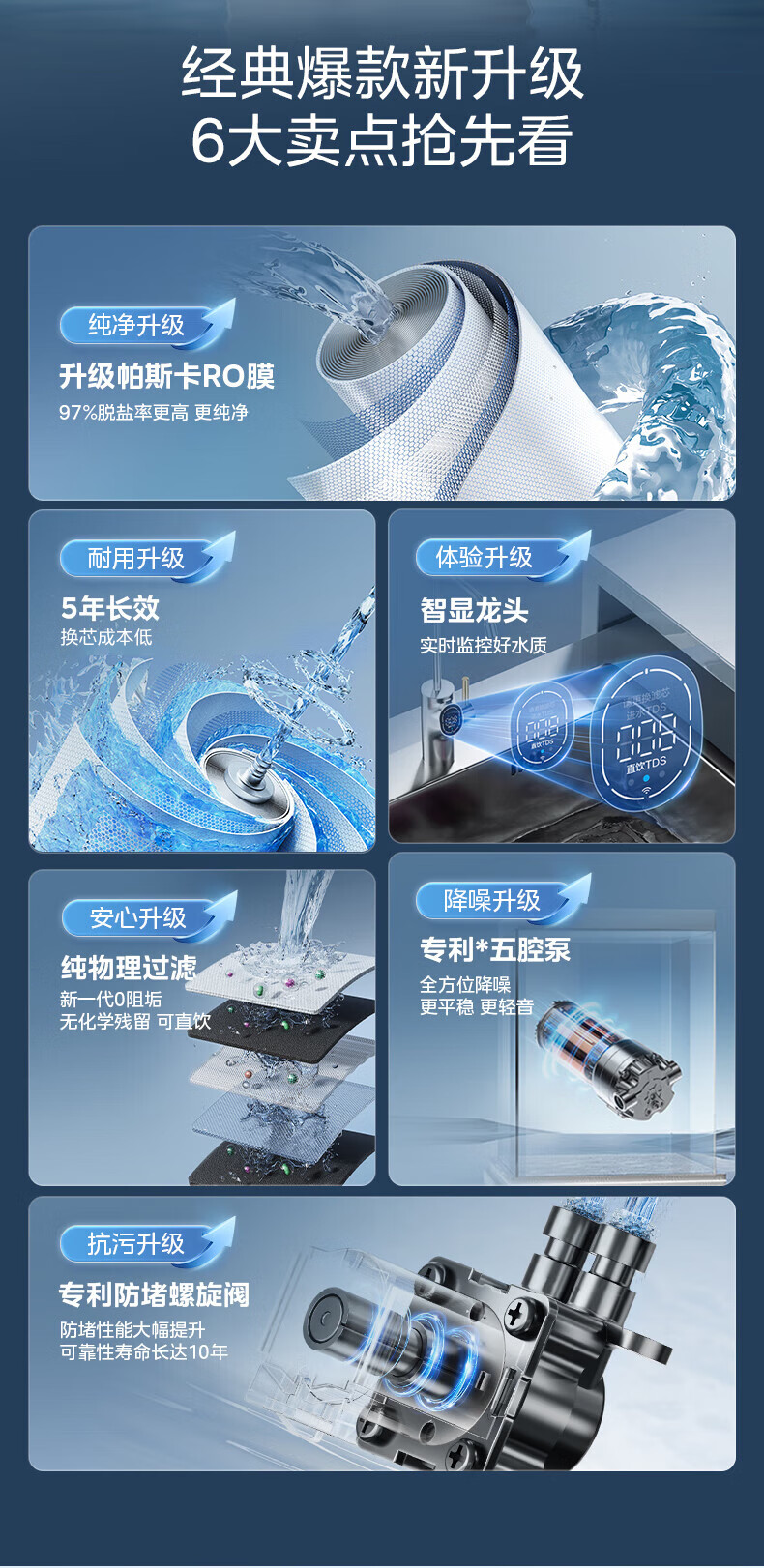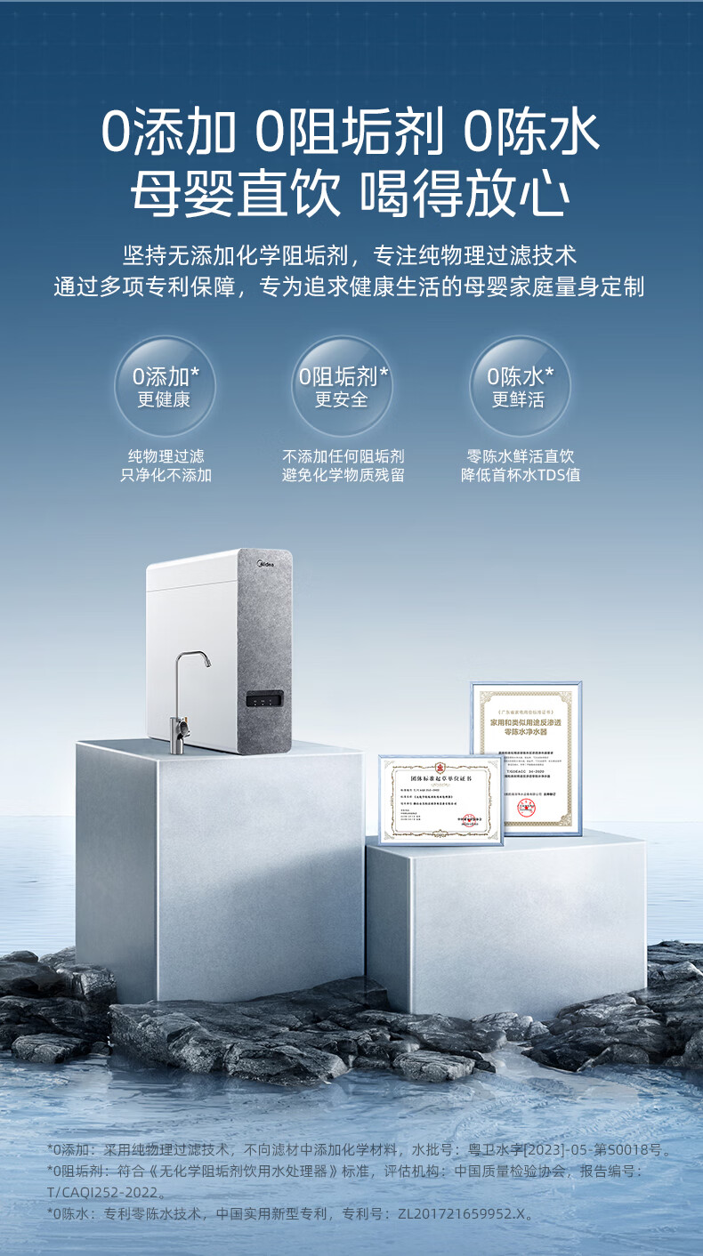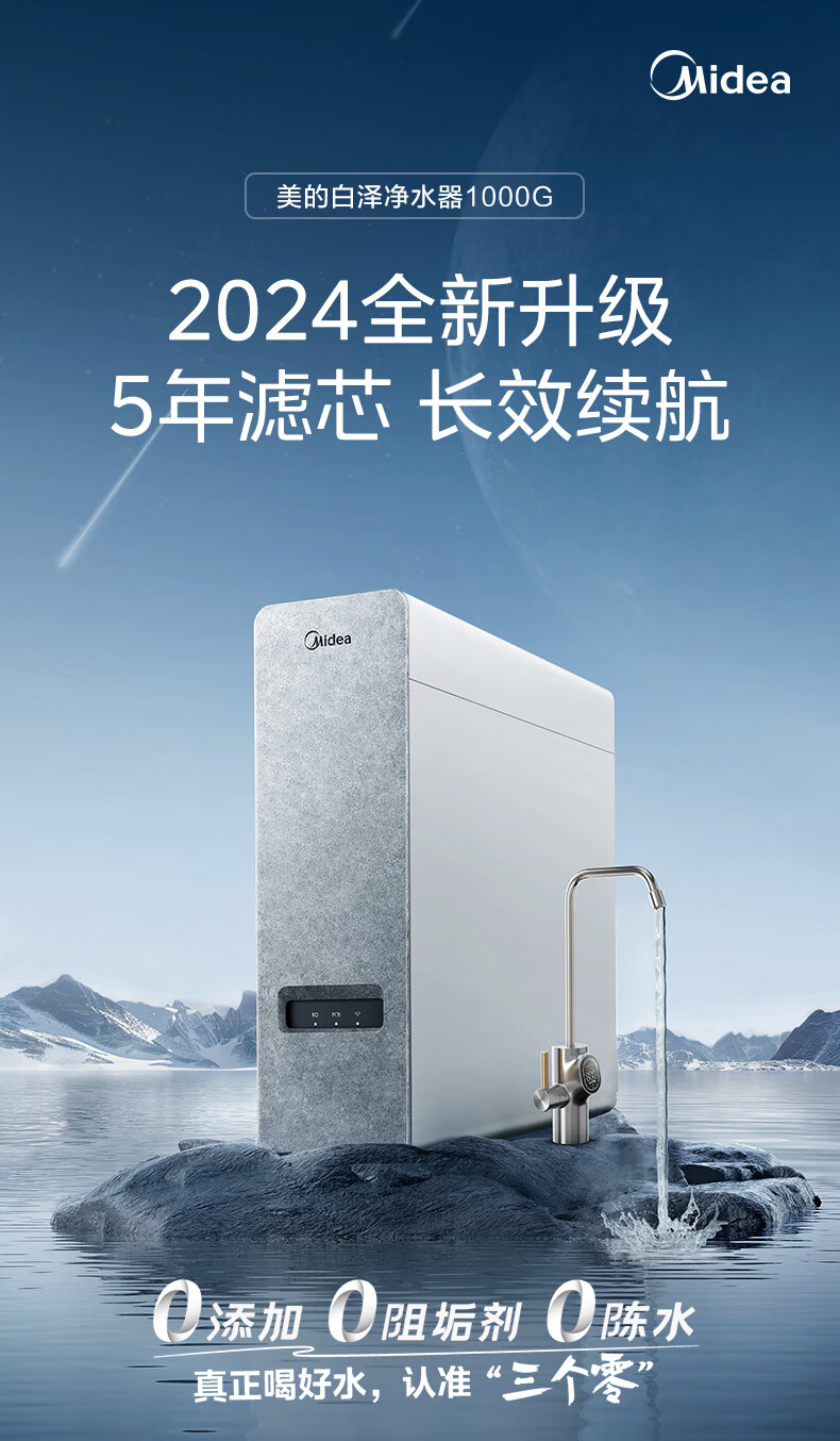 美的(Midea)国家补贴净水器家用0阻垢剂白泽1000G 5年长效RO反渗透