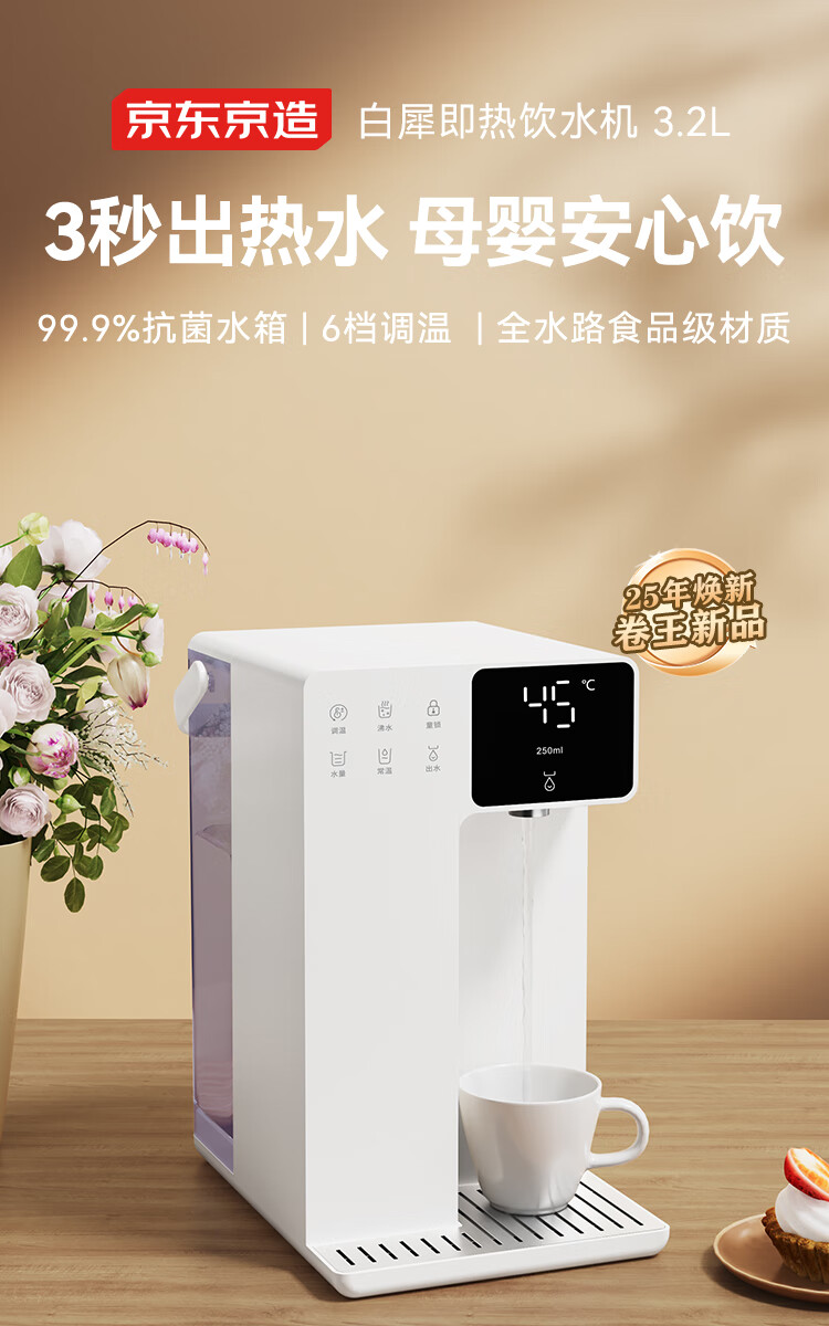 京东京造白犀即热式饮水机家用台式小型桌面饮水烧水直饮机烧水壶 3秒速热